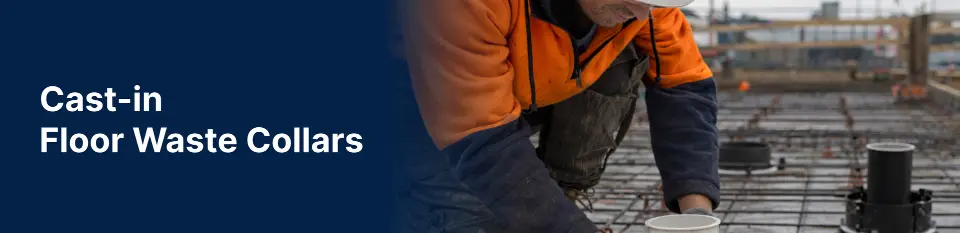 Cast-in Floor Waste Collars are designed to maintain fire resistance where floor waste penetrations occur in wet areas. Wherever services pass through a building element, fire collars are required to preserve the Fire Resistance Level (FRL).